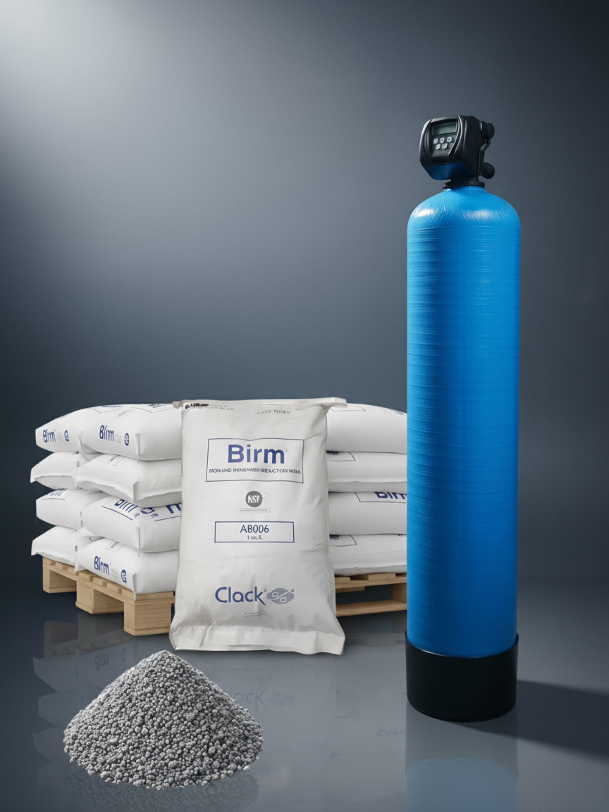 Birm Material stellt eine effiziente und wirtschaftliche Methode zur Reduktion von gelöstem Eisen und Manganverbindungen aus Rohwasser dar. Birm wirkt als unlöslicher Katalysator zur Verstärkung der Reaktion zwischen gelöstem Sauerstoff und den Eisen Verbindungen. Im Grundwasser kommt das Eisen meist gelöst vor und liegt normalerweise im Eisenbikarbonat Zustand vor. Aufgrund des Überschusses an freier Kohlensäure ist es meist nicht über einfache Kiesfilter oder Filterkerzen filtrierbar. Birm als Katalysator zwischen dem Sauerstoff und dem löslichen Eisen Verbindungen, verstärkt die Oxidationsreaktion von Fe++ zu Fe und produziert Eisenhydroxid. Das Eisenhydroxid fällt aus und ist somit leicht filtrierbar. Die physikalischen Eigenschaften von Birm stellt ein ausgezeichnetes Filtermaterial dar, das leicht zu reinigen ist. Durch Rückspülen wird das Fällungsmittel schnell und einfach entfernt. Birm wird bei der Eisenentfernung nicht verbraucht und bietet daher einen enormen wirtschaftlichen Vorteil gegenüber vielen anderen Eisenentfernungsmethoden.